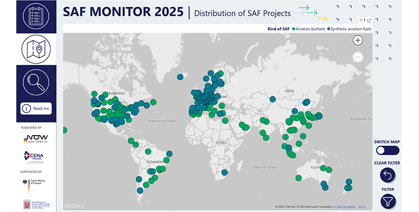 NOW GmbH und CENA Hessen präsentieren wichtige Neuerungen in der interaktiven Datenvisualisierung zur Produktion von Sustainable Aviation Fuels (SAF).